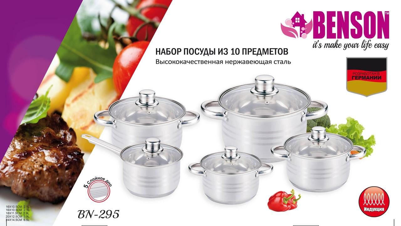 Посуд із багатошаровим дном, забезпечують чудовий розподіл та збереження тепла. Кришки виконані з жароміцного скла з клапаном для відведення пари. Клепочная система кріплення ручок як довговічна, а й зарекомендувала себе тим, що ручки не нагріваються разом із корпусом каструлі. Усередині каструль мірна шкала. Сковорода має мармурове антипригарне покриття. Набір посуду підходить для всіх типів плит, включаючи індукційні. Прекрасний вибір каструль для Вашої кухні та звершень Ваших кулінарних шедеврів.