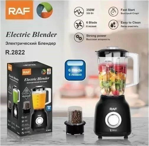 Блендер стаціонарний з кавомолкою RAF R-2822 - настільний блендер ідеальний помічник для збивання білків, соусів, для змішування фруктів і овочів, приготування коктейлів і смузі, а також для подрібнення льоду, для подрібнення і змішування різних видів горіхів, кавових зерен.